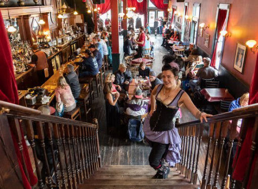 This 6.5-hour combo excursion includes a ride along the White Pass & Yukon Route Railway, a salmon bake at Liarsville Gold Rush Trail Camp, and cocktails at Red Onion Saloon. Hop in a vintage railcar for a journey along the “Railway of the World”, as you view sky-high mountains, plunging gorges, gushing waterfalls and tall evergreens along a narrow gauge railroad. In Fraser, BC you’ll hop off and take a motor coach through scenic valleys to the Liarsville Gold Rush Trail Camp. Meet costumed storytellers who perform a rousing melodrama about Alaska’s Klondike-era prospecting days. Here you’ll also learn how to pan for gold and savor an authentic salmon bake in true Alaskan style, complete with grilled wild salmon, baked chicken, salad, baked beans, cornbread and dessert. A short drive back into town leads you to the historic Red Onion Saloon, the city’s once-thriving brothel dating back to 1897. Follow the madams upstairs to the Bombay room to check out the bordello’s old relics and artifacts whilst sipping on a complimentary glass of champagne. Cheers to the ultimate Skagway adventure